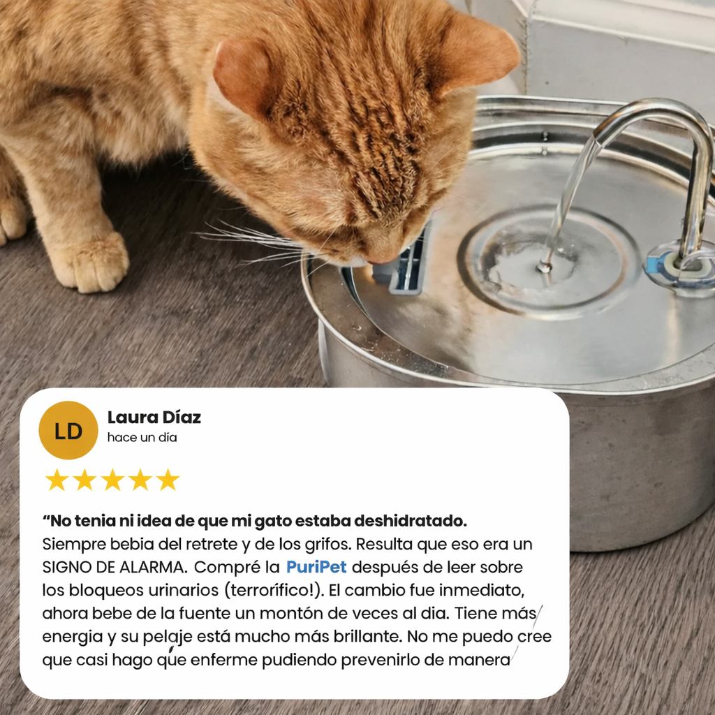 La fuente de agua PuriPet™ soluciona este problema desde el origen: